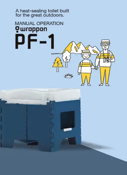 The PF-1 portable toilet system developed by Nippon Safety uses heat sealing to seal used waste without using water. Waste is individually wrapped and the soiled film can be cut off after use, making it highly hygienic.